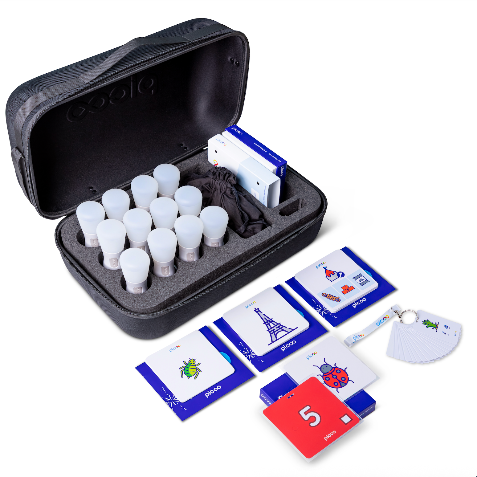 De Premium Set bestaat uit 12 Picoo controllers, die je na gebruik in een handige koffer opbergt. Hierin kun je ze gelijk opladen. Liever met een grotere groep tegelijk spelen? Ook dat kan, er kunnen namelijk meerdere sets aan elkaar gekoppeld worden.