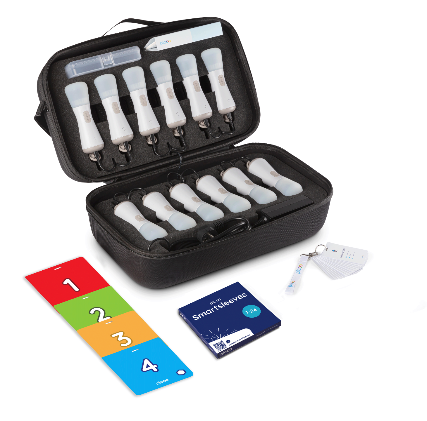 De Premium Set bestaat uit 12 Picoo controllers, die je na gebruik in een handige koffer opbergt. Hierin kun je ze gelijk opladen. Liever met een grotere groep tegelijk spelen? Ook dat kan, er kunnen namelijk meerdere sets aan elkaar gekoppeld worden.